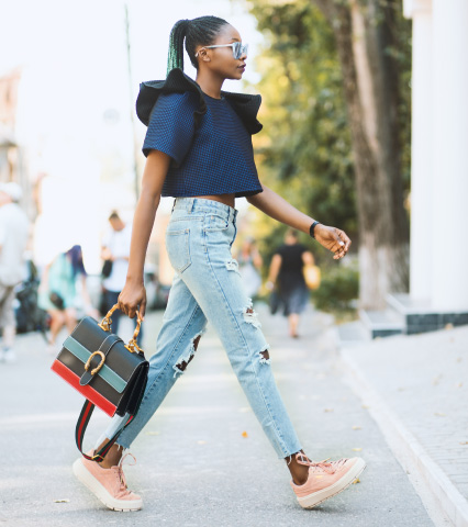 ちょこちょこと小股で歩いたり、大股過ぎても、美しい歩き方には見えません。歩幅は肩幅くらいを目安に。