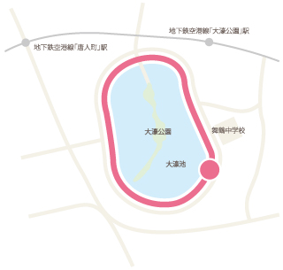天守閣を中心とした、大阪の中心に位置する広大な公園。緑溢れる市民の森や、西の丸公園が四季の憩いを見せる、ランニングには最適のコース!